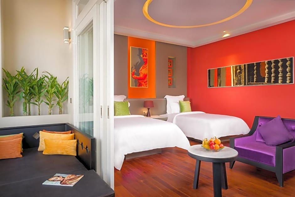 The Royal Family Suite is designed with two rooms which master bed room is king bed and another room is twin bed and the living room in the middle which is very comfort for family travelers or coming with group of friends as of each room got own bathroom and private entrance. All rooms are facing to giant 03types of swimming pool & the green garden. We are offer the complimentary services as below: - Free selected healthy fresh juice of welcome drink and cold towel upon arrival - Free homemade cookies in room upon arrival - Free daily breakfast - Free one-way city drop off by traditional remork-tuk tuk - Own Expresso making coffee in the room - 15mn foot massage - Nightly turn down service - 15% off on food & beverage